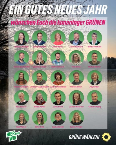 Der Ortsverband der Grünen Ismaning lädt gemeinsam mit dem Kreisverband München-Land herzlich zum Neujahrsempfang 2026 ein! Am Sonntag, 11. Januar 2026 ab 11:00 Uhr, begrüßen wir Katharina Schulze, Fraktionsvorsitzende der Grünen im…