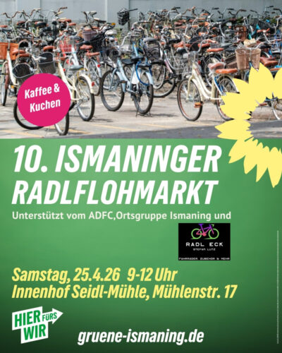 Du hast ein altes Radl, das noch gut in Schuss ist, aber ungenutzt in der Garage steht? Oder dein Kind ist wieder so schnell gewachsen, dass ein größeres Fahrrad gebraucht wird? Dann komm vorbei zum 9. Ismaninger Radlflohmarkt!
